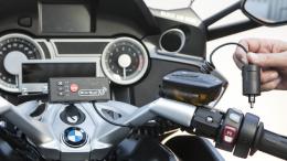 The RiderEcall is a monitoring device with two modules: one of them is installed on the bike with the included mounting system, and the other sensor is easily attached to any type and make of motorcycle helmet. The bike-side unit also comes with an included power cord for a 12V DC bike socket and is waterproof.